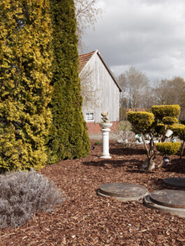 Paradies ist, was man draus macht. Umgeben von der Moorlandschaft Gallener Torfmöörte, direkt hinter dem Ortsschild “Paradies”, befindet sich ein prominentes Grundstück mit einem aufwendig dekoriertem Garten. Das Anwesen ist durch einen Kanal von der Hauptstraße abgetrennt und auf einem tiefen Betonfundament erbaut, um dem feuchten Moorboden stetig entgegenzuwirken. Durch handwerkliche Gestaltung und hingebungsvolle Pflege nimmt der Garten eine besondere Stellung im Ort ein.